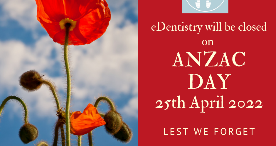 “Lest We Forget” – eDentistry Wantirna will be closed for the Anzac Day Public Holiday and re-open on Tuesday the 26th April.