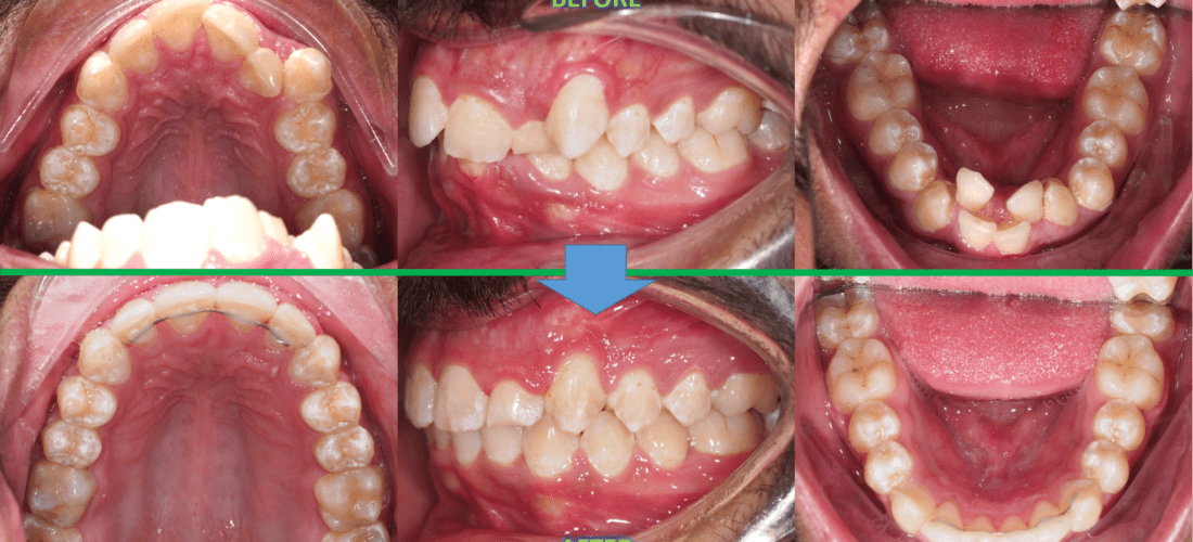The same orthodontics case but from inside the mouth. There was a lot of crowding particularly on the bottom, but this did not require removal of any teeth.