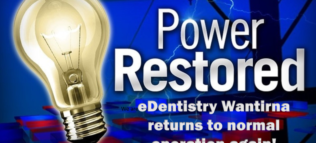 eDentistry Wantirna is back in operation now that the power is restored. All Saturday (12th June) appointment are now able to go ahead.